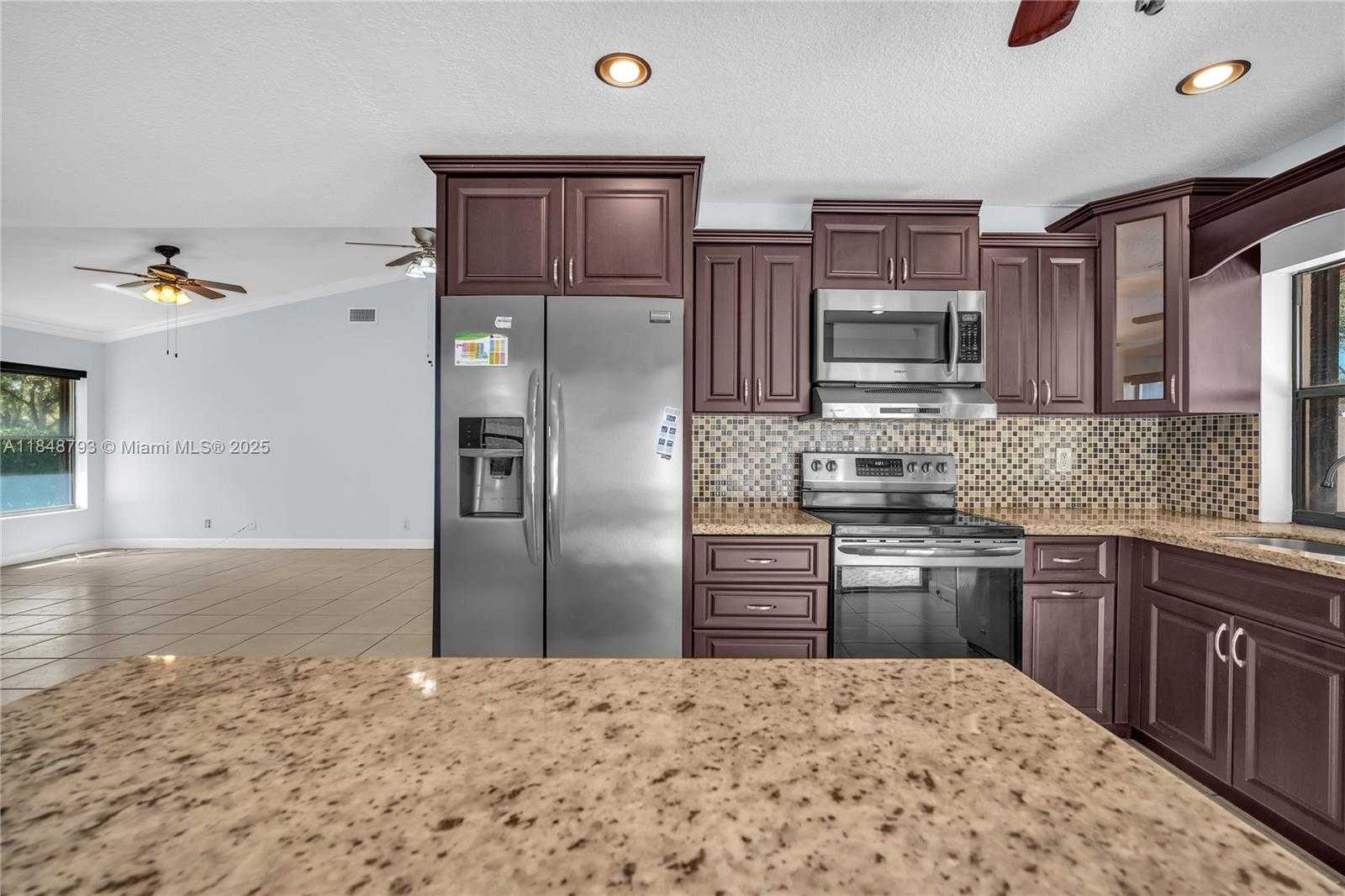 Detailed Description: Discover this inviting 3-bedroom, 2-bathroom home in the heart of the Rock Creek Community neighborhood in Cooper City. This home is set in a quiet street with minimal traffic. It offers an open concept layout, featuring natural lighting, a beautifully renovated kitchen with marble countertops, a formal dining room area, a new washer / dryer set, and a modern stove. Enjoy a beautiful pool with a newly installed water pump and a newly installed white fence. The professionally designed landscaping, enhanced with elegant white stone gravel, adds to the curb appeal and ambiance. Cooper City offers top-rated A + schools and a friendly community. HOA is $200 Quarterly, and Paseo Verde $275 a year.